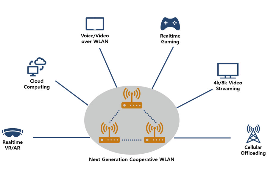WILUS has actively participated in the standardization of IEEE 802.11ax HEW (High Efficiency WLAN), which will be the 6th generation wireless LAN standard. Based on our experience in IEEE and 3GPP standardization activities, we proposed many technologies enabling the enhanced Wi-Fi experiences. We also have participated in IEEE 802.11ba WUR (Wake Up Radio) specification, which solves the conflicting goals of low power consumption and low latency to increase the battery life of WLAN based IoT devices. We are also contributing to IEEE 802.11be EHT (Extremely High Throughput). It will enable new high-throughput, low latency applications such as 4K/8K video streaming, virtual reality or augmented reality, gaming, remote office and cloud computing.